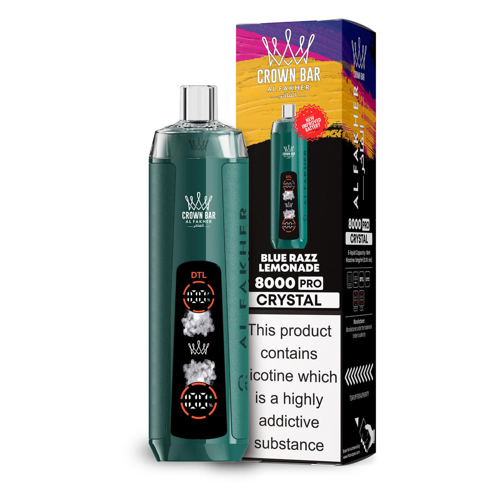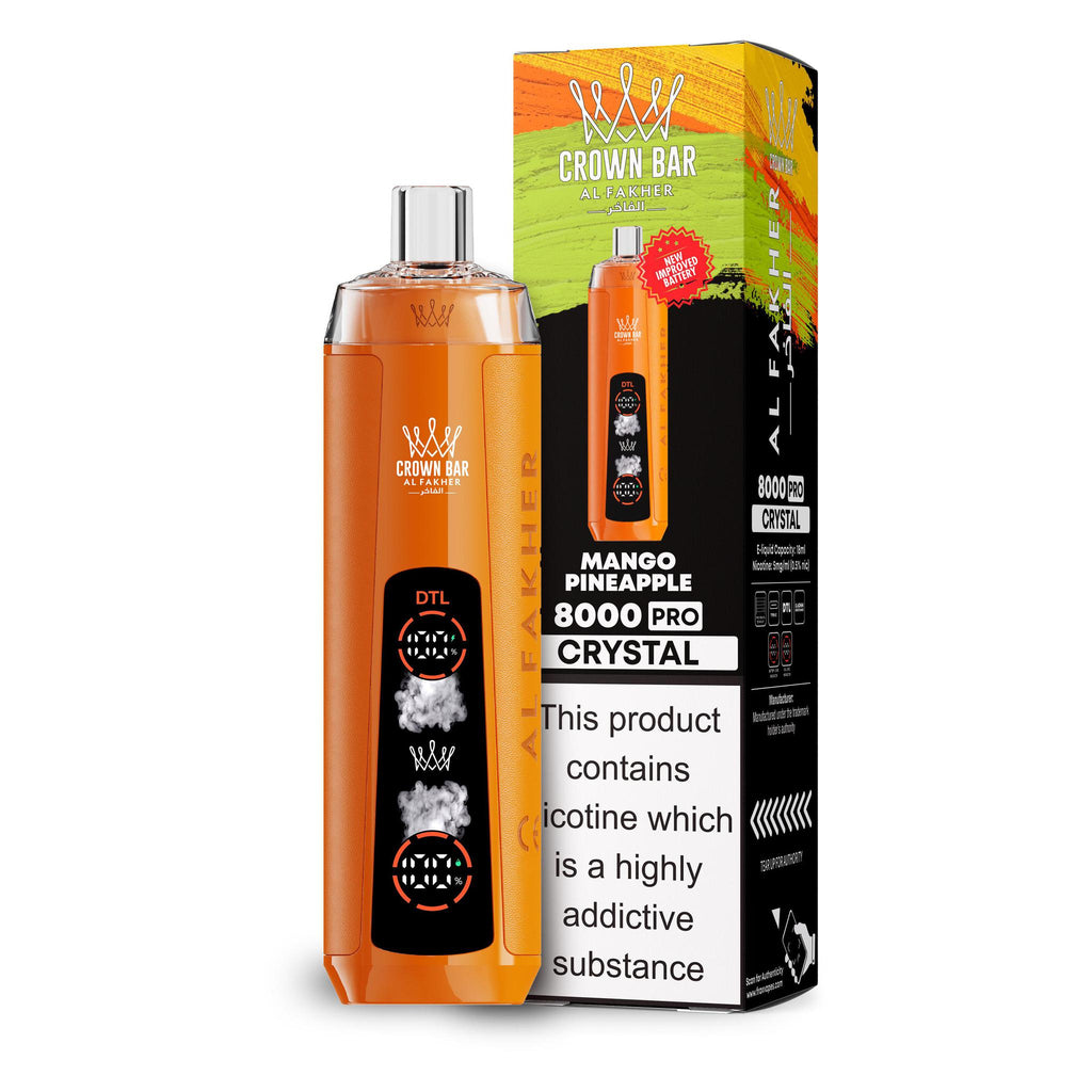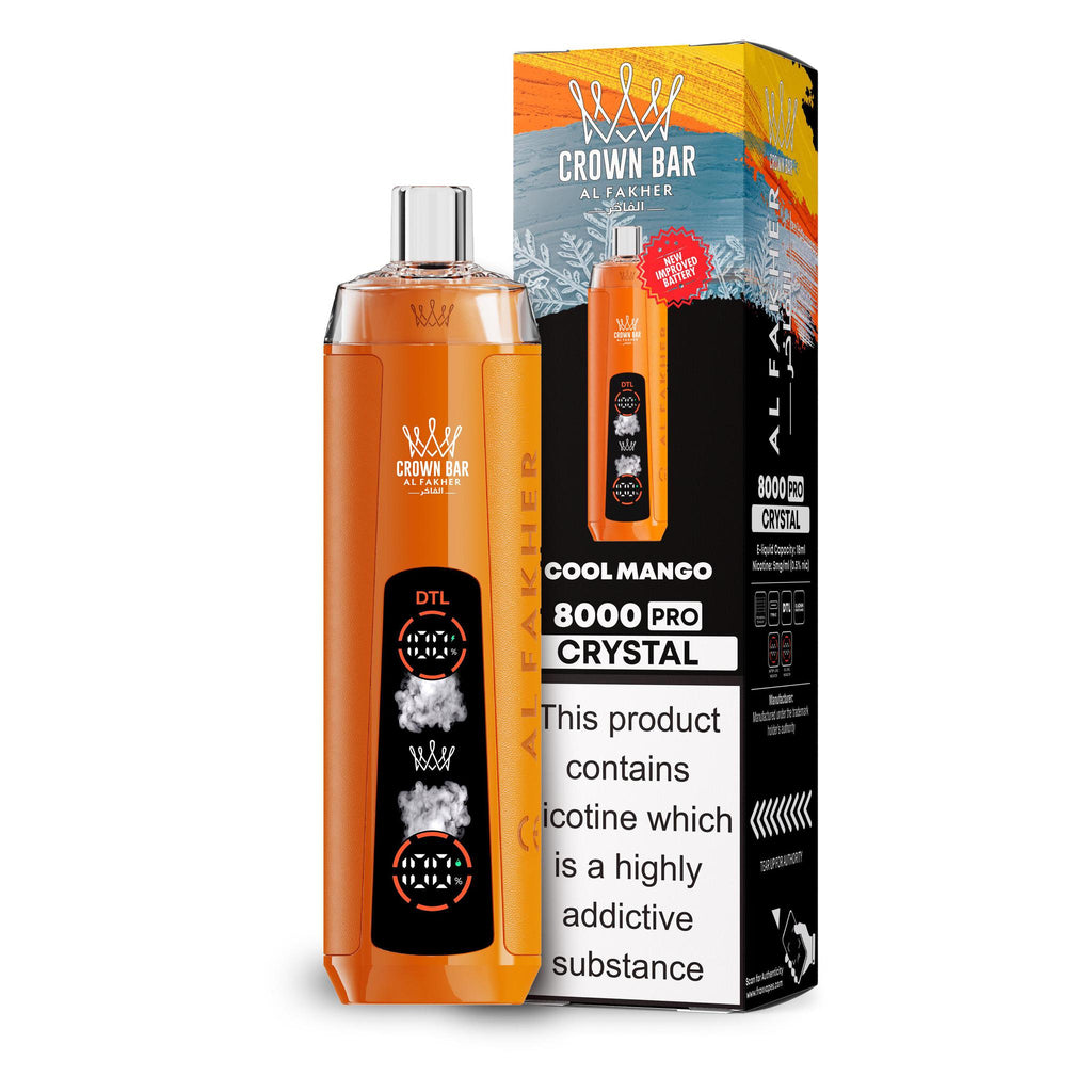 Pre-filled with an e-juice capacity of 18ml and 5mg of nicotine, the Al Fakher Crown Bar 8000 disposable vaporizer delivers approximately 8000 puffs in a compact, light, and portable design. With a Rechargeable battery, Being disposable, the vape device requires no filling and pod swapping. After your Al Fakher Crown Bar 8000 vaporizer runs out of juice and/or battery, simply purchase a replacement. This disposable vape device is perfect for someone transitioning into vaping and also offers enough performance and flavor to satisfy even the pickiest of vapers. Easy to use