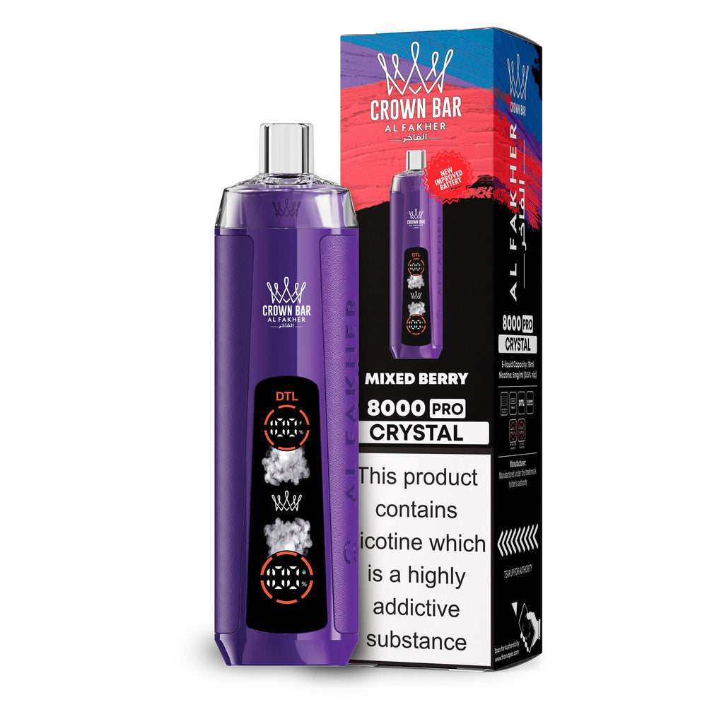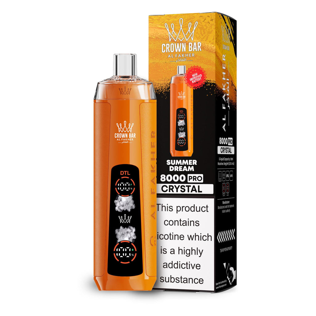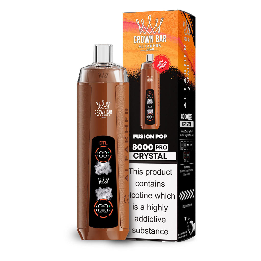 Pre-filled with an e-juice capacity of 18ml and 5mg of nicotine, the Al Fakher Crown Bar 8000 disposable vaporizer delivers approximately 8000 puffs in a compact, light, and portable design. With a Rechargeable battery, Being disposable, the vape device requires no filling and pod swapping. After your Al Fakher Crown Bar 8000 vaporizer runs out of juice and/or battery, simply purchase a replacement. This disposable vape device is perfect for someone transitioning into vaping and also offers enough performance and flavor to satisfy even the pickiest of vapers. Easy to use
